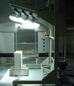 对于在屋外使用的电气设备,通过用模拟自然光的灯光照射,来调查热影响的装置。