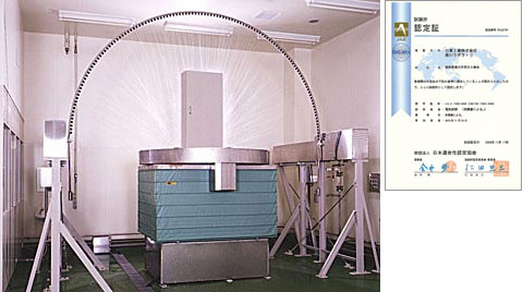 是确认IEC规格(IEC60529)中规定的外套(外壳)的防尘性的设备,菊川研究室作为进行IP试验的试验所,通过了(财)日本适合性认定协会(JAB)的ISO/IEC指南17025认定。